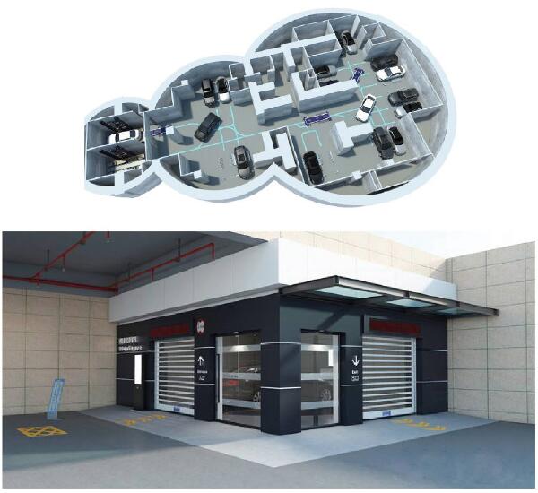 3、密集式停车,车辆间无需开门空间,无需人为倒车。通过停车机器人的灵活搬运存放,实现有限空间内车位数的最大化。