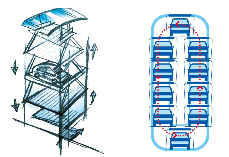 垂直循环系列车库占地面积小,节省土地,对场地要求低,选址灵活;独立或组台形式,利用两车位空间可停放十五辆汽车,完善的封闭和检测系统,安全系数高。