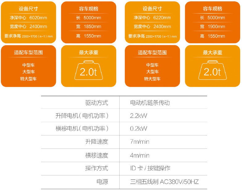 大跨粱结构设计,链条式升降驱动系统,运行平稳;